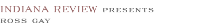 Ross Gay's first book is Against Which (CavanKerry Press, 2006). He is an editor at Q Avenue chapbook press. Additionally, he is co-author, with Kim Thomas, of the artist's books BRN2HNT and The Cold Loop.